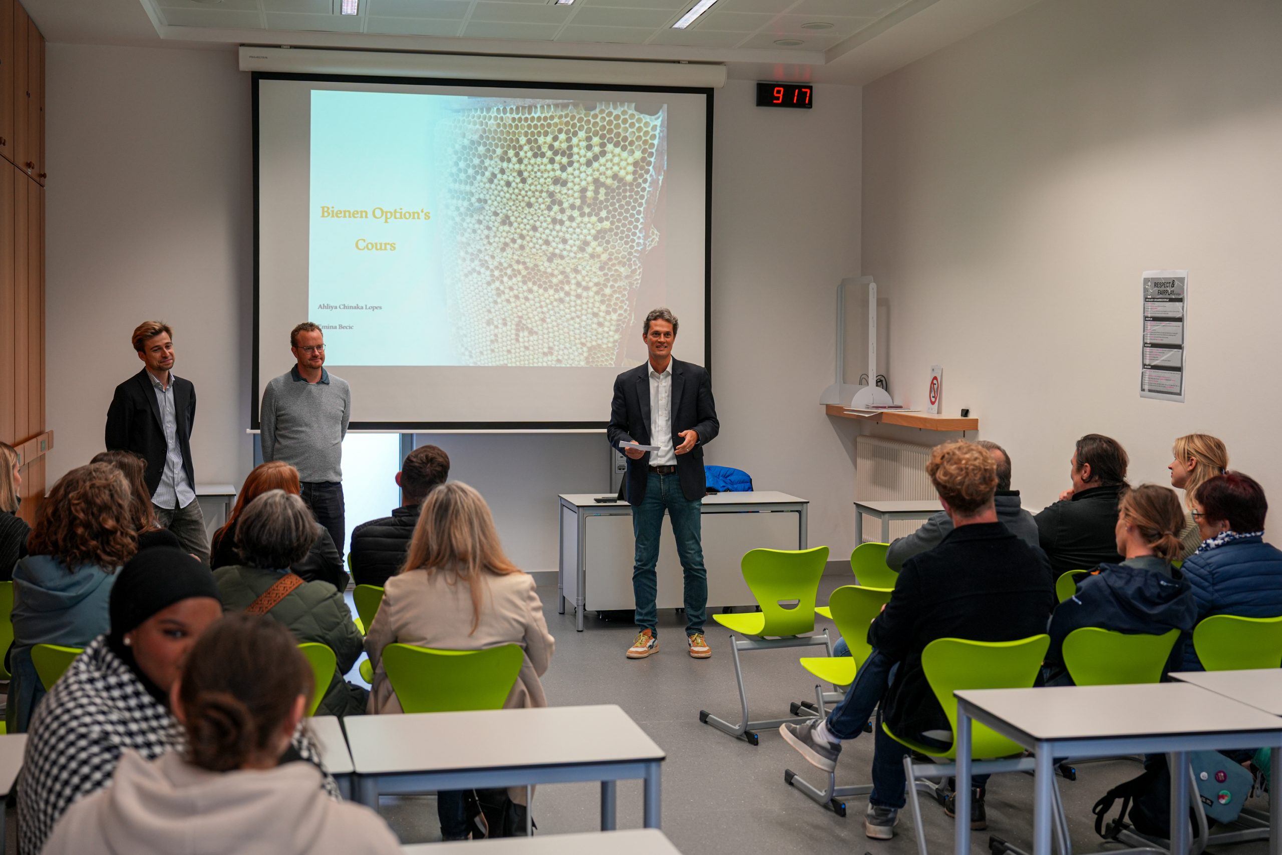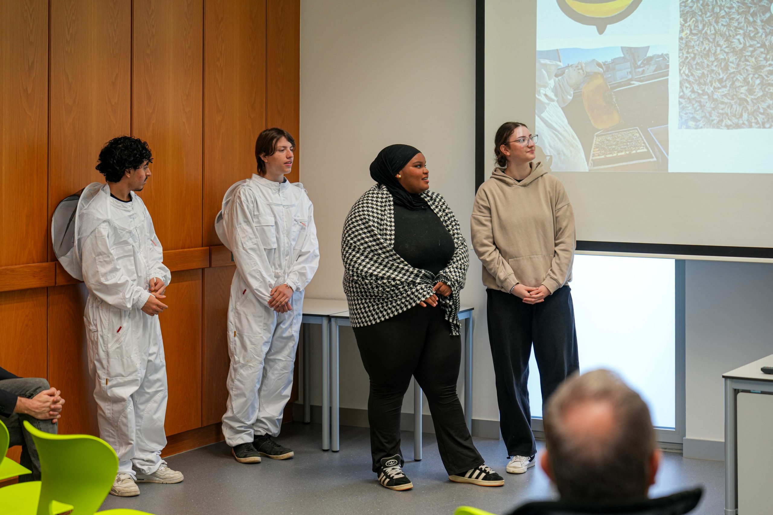 Bei enger klenger Presentatioun hunn d’Schüler de Projet virgestallt an eis Gäscht konnten hinne bei der Visite eng ganz Rei Froe stellen. Zum Schluss konnten eis Gäscht nach eisen Hunneg schmaachen.