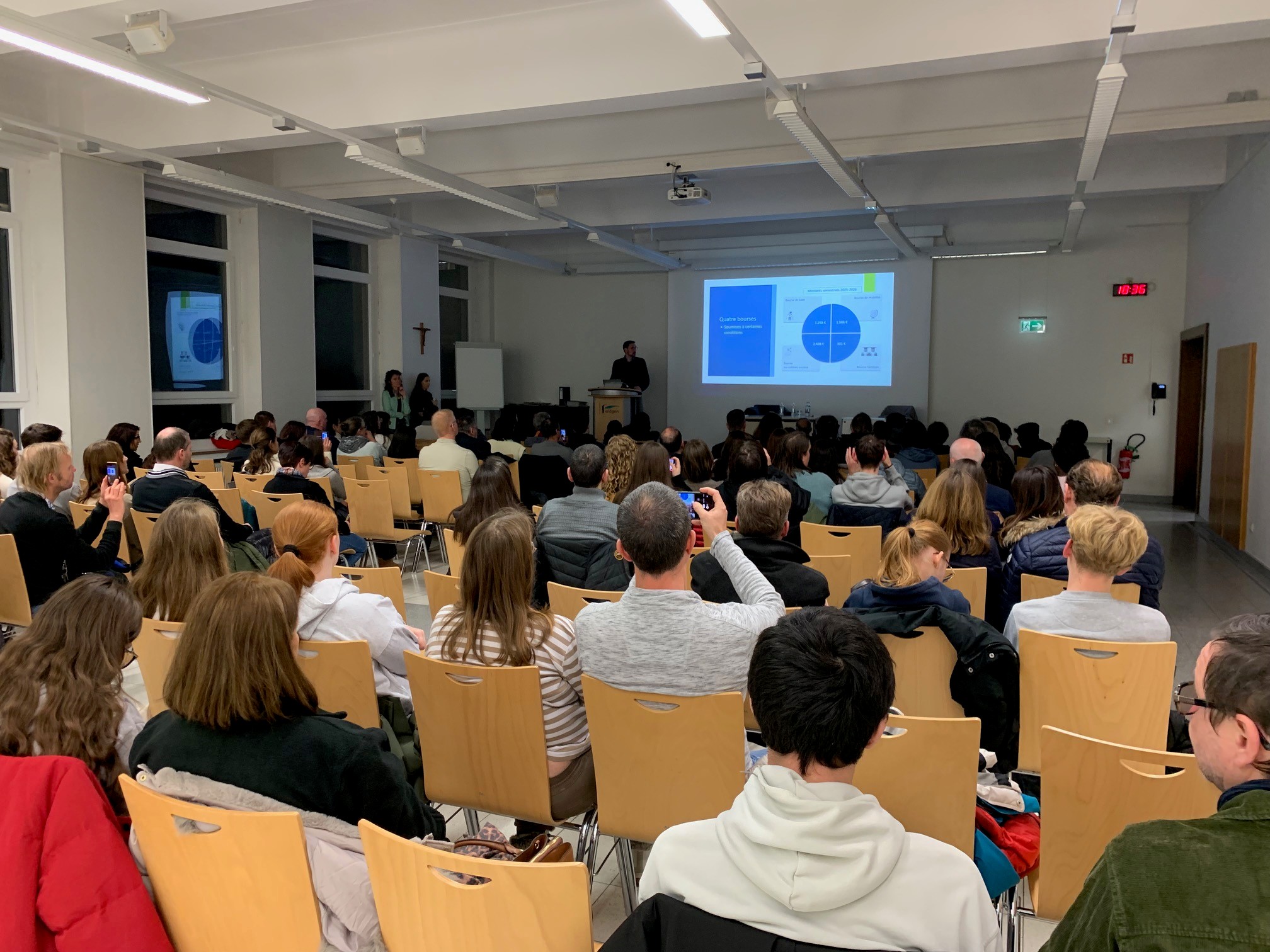 Pour accompagner nos élèves et leurs parents dans ce parcours, nous avons accueilli des experts du Ministère de l'Éducation, qui ont présenté comment se préparer à étudier dans les pays voisins et qui ont donné des informations sur les aides financières disponibles.